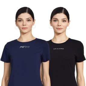 Stylish Women T-Shirt Combo (Black & Blue)